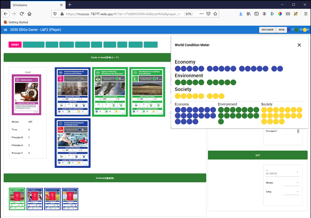 Last year the students (around 30 of them) played the game in teams, the teams were all in the same room with their objectives and resources in the form of physical cards. The levels of interaction, negotiation and (yes!) argument were high. The learning, and engagement/energy was palpable in the room, both about how individuals have competing objectives, and how the decisions individuals were taking impacted on the state of the World’s economy, environment and the broader society that they were creating. Could this experience be replicated in a COVID-adapted environment in 2020?